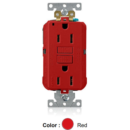 Leviton MGFN1-R, Lev-Lok SmartlockPro Self-Test GFCI Duplex Receptacle, Power Indication, Extra Heavy-Duty Industrial Specification Grade, 15A 125V, NEMA 5-15R, 2-Pole, 3-Wire, Self-Grounding, Red