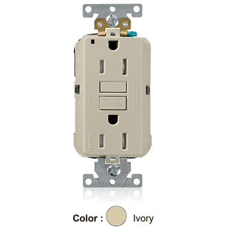 Leviton MGFT1-I, Lev-Lok SmartlockPro Self-Test GFCI Duplex Receptacle, Power Indication, Extra Heavy-Duty Industrial Specification Grade, Tamper-Resistant, 15A 125V, NEMA 5-15R, 2-Pole, 3-Wire, Self-Grounding, Ivory
