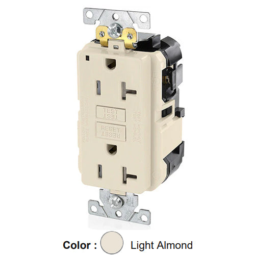 Leviton MGFT2-T, Lev-Lok SmartlockPro Self-Test GFCI Duplex Receptacle, Power Indication, Extra Heavy-Duty Industrial Specification Grade, Tamper-Resistant, 20A 125V, NEMA 5-20R, 2-Pole, 3-Wire, Self-Grounding, Light Almond