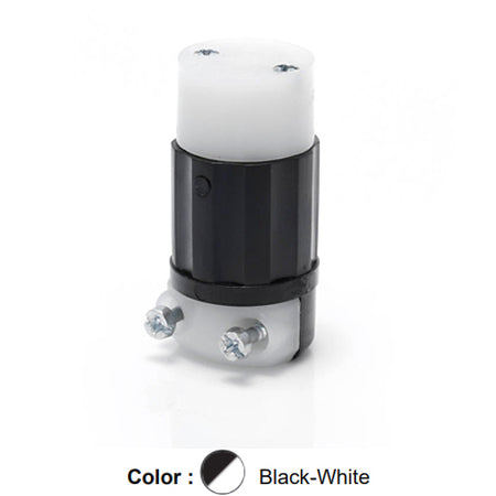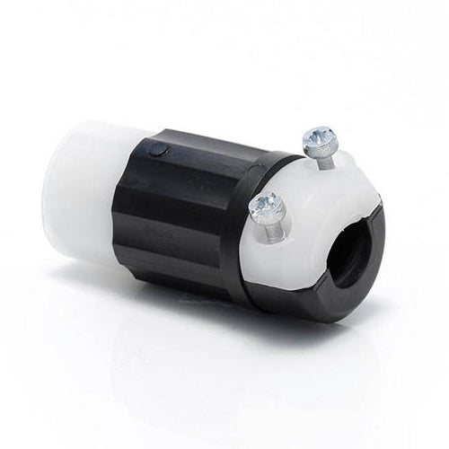 Leviton ML1-C, Midget Locking Connector, Industrial Grade, 15 Amp, 125 Volt, NEMA ML1R, 2-Pole, 2-Wire, Non-Grounding, Black/White