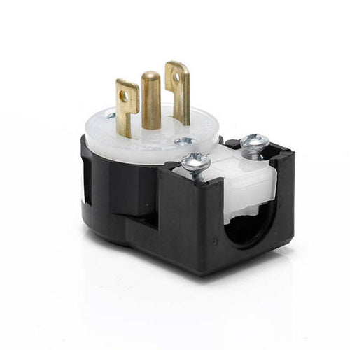 Leviton ML3-AP, Midget Locking Angle Plug, Industrial Grade, 15 Amp, 125/250 Volt, NEMA ML3P, 3-Pole, 3-Wire, Non-Grounding, Black/White