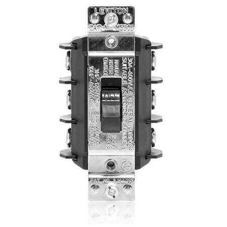 Leviton MS303-DSS, Three-Phase Single Throw AC Manual Motor Controller Component Switch, Suitable as Motor Disconnect, Short Toggle, Industrial Grade, 30 Amp, 600 Volt, 3-Pole, Non-Grounding, Back & Side Wiring, Black