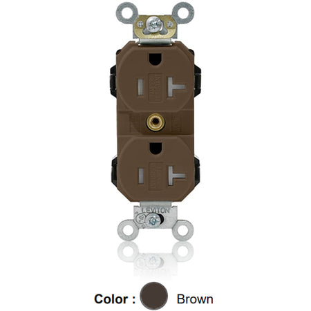 Leviton MT563-S, Lev-Lok Straight Blade Duplex Receptacle, Heavy-Duty Industrial Specification Grade, Smooth Face, Tamper-Resistant, 20A 125V, NEMA 5-20R, 2-Pole, 3-Wire, Modular Terminals, Brown
