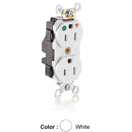 Leviton MT820-IGW, Lev-Lok Straight Blade Duplex Receptacle, Heavy-Duty Hospital Grade, Tamper-Resistant, Isolated Ground, Smooth Face, 15A 125V, NEMA 5-15R, 2-Pole, 3-Wire, Modular Terminals, White