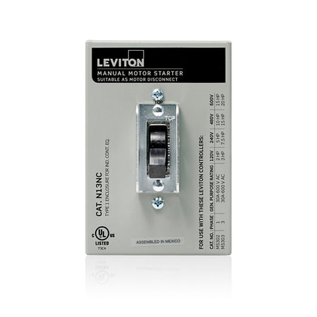 Leviton N13NC-DS, Type 1 Manual Motor Controller Enclosure (For Use with 30 Amp Motor Controller Switches), Steel, Gray