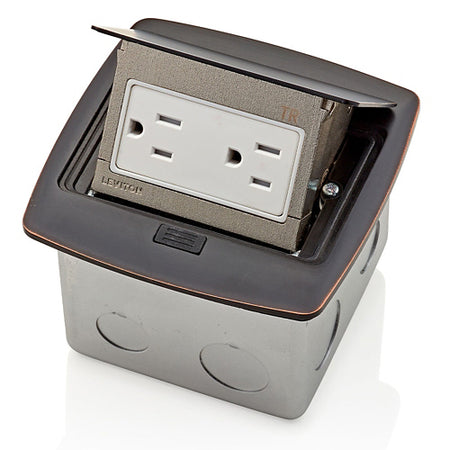 Leviton PFTR1-BZ, Pop-Up Floor Box with Tamper-Resistant Decora Duplex Receptacle, 15A 125V, NEMA 5-15R, 2-Pole, 3-Wire, Bronze