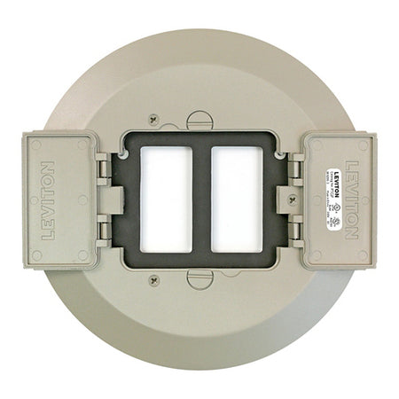 Traditional Floor Cover For Use With Leviton 5" Poke Through Floor Box (PT500) Only; Accommodates All Standard Decora Receptacles. The Flip Lids Are A Double-Hinge Design That Can Open 180 Degrees And Lay Flat; Also Includes Metal Subplate And Pre-Assembled Gasket And Mounting Screws, And Cover Mounting Screws, Brass