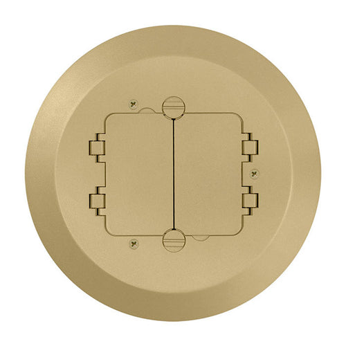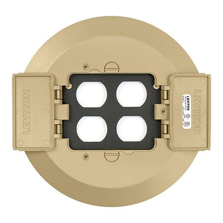 Traditional Floor Cover For Use With Leviton 5" Poke Through Floor Box (PT500) Only; Accommodates All Standard Duplex Receptacles. The Flip Lids Are A Double-Hinge Design That Can Open 180 Degrees And Lay Flat; Also Includes Metal Subplate And Pre-Assembled Gasket And Mounting Screws, And Cover Mounting Screws, Brass