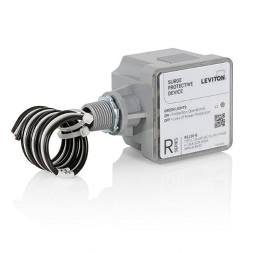 Leviton R2120-B, R Series Type 1 Surge Panel, 120/240 VAC, Split Phase, Max Surge Current Rating of 36kA per Mode/36kA per Phase, 200kA Short Circuit Current Rating (SCCR), NEMA 4X Rated Enclosure, Gray