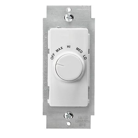 1.5 Amp, 120 Volt AC 60Hz, Single-Pole, IllumaTech Quiet Step Electro-Mechanical, Rotary Fan Speed Control - White face assembled to device.