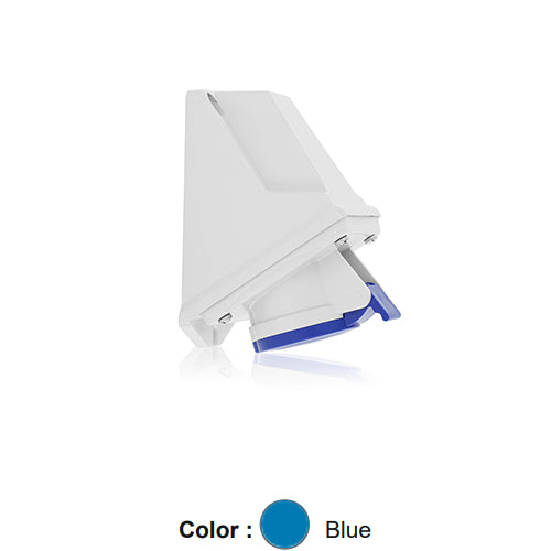 Leviton S232-S6, International Configuration Pin & Sleeve Surface Mounting Socket Outlet, Industrial Grade, 32 Amp, 200-250 Volt, 2P+E (2P, 3W), Clock Position 6, IP44, Splashproof, Blue