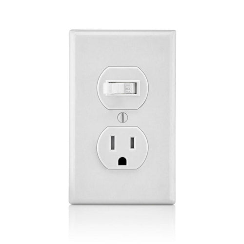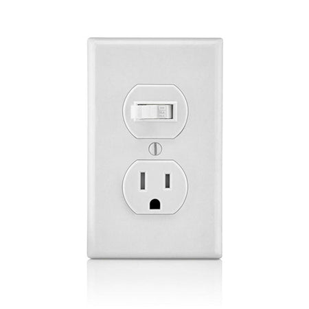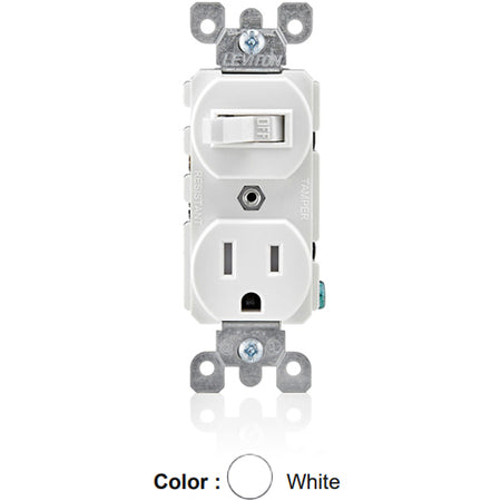 Leviton T5225-W, Duplex Style Single-Pole/5-15R AC Combination Switch, Tamper-Resistant, Commercial Grade, 15 Amp, 120 Volt, Grounding, Side Wired, White