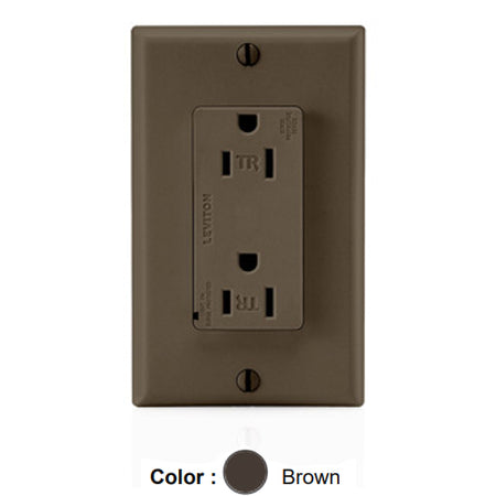 Leviton T5280, Decora Plus Surge Protective Duplex Receptacle, Commercial Specification Grade, Tamper-Resistant, Indicator Light, 15A 125V, NEMA 5-15R, 2-Pole, 3-Wire, Back and Side Wire, Brown