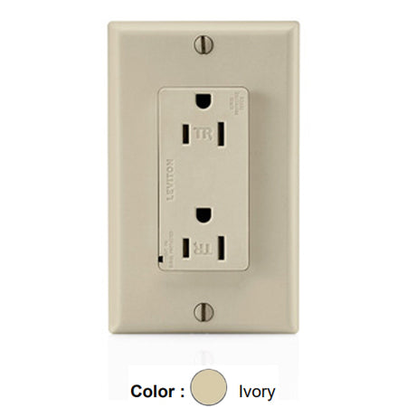 Leviton T5280-I, Decora Plus Surge Protective Duplex Receptacle, Commercial Specification Grade, Tamper-Resistant, Indicator Light, 15A 125V, NEMA 5-15R, 2-Pole, 3-Wire, Back and Side Wire, Ivory