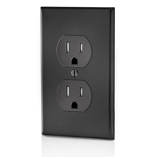 Leviton T5320-E, Tamper-Resistant Straight Blade Duplex Receptacle, Residential Grade, 15A 125V, NEMA 5-15R, 2-Pole, 3-Wire, Quickwire Push-In & Side Wired, Black, 4 Packs