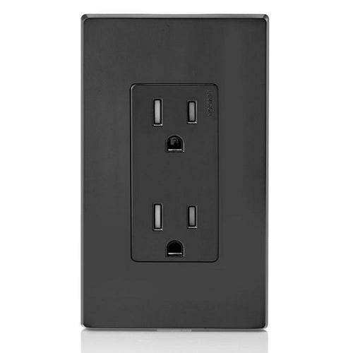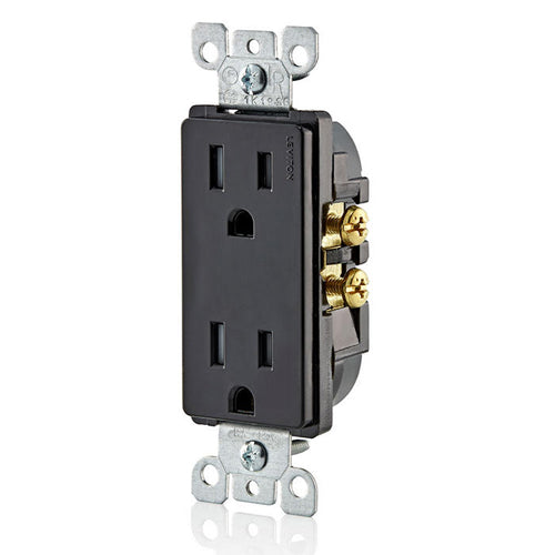 Leviton T5325-E, Tamper-Resistant Decora Straight Blade Duplex Receptacle, Residential Grade, 15A 125V, NEMA 5-15R, 2-Pole, 3-Wire, Quickwire Push-In & Side Wired, Black, 4 Packs