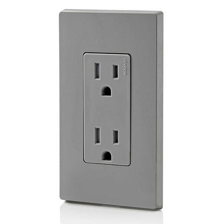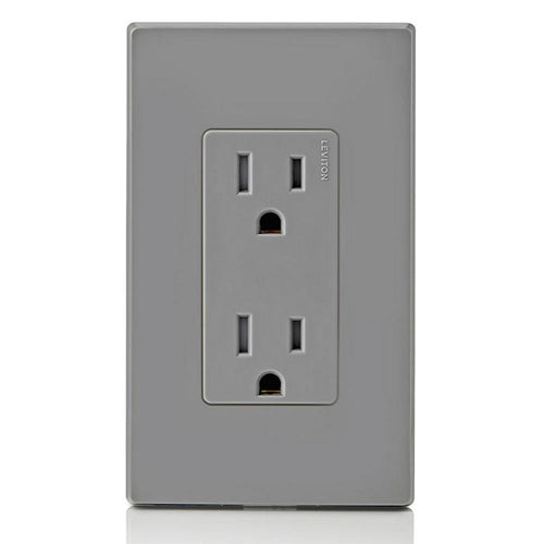 Leviton T5325-GY, Tamper-Resistant Decora Straight Blade Duplex Receptacle, Residential Grade, 15A 125V, NEMA 5-15R, 2-Pole, 3-Wire, Quickwire Push-In & Side Wired, Gray, 4 Packs
