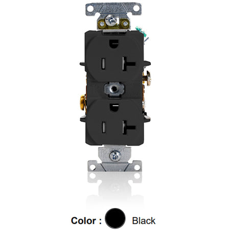 Leviton T5362-E, Tamper-Resistant Standard Straight Blade Duplex Receptacle, Heavy-Duty Industrial Specification Grade, Smooth Face, 20A 125V, NEMA 5-20R, 2-Pole, 3-Wire, Self-Grounding, Back and Side Wire, Black