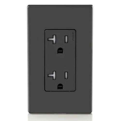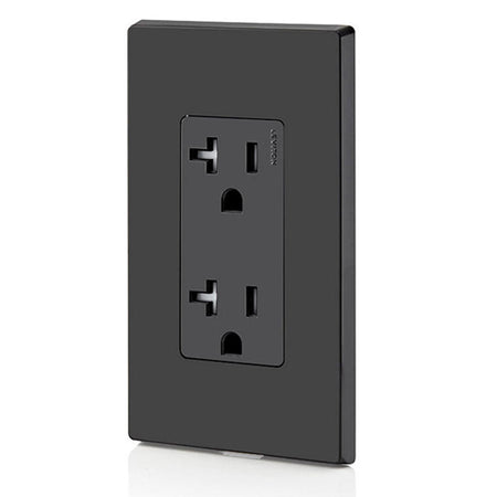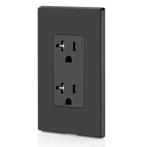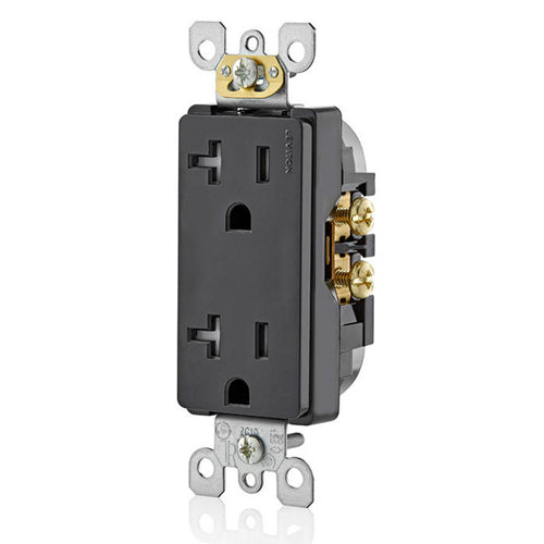 Leviton T5825-E, Decora Straight Blade Duplex Receptacle, Residential Grade, Tamper-Resistant, 20A 125V, NEMA 5-20R, 2-Pole, 3-Wire, Self-Grounding, Side Wired Only, Black