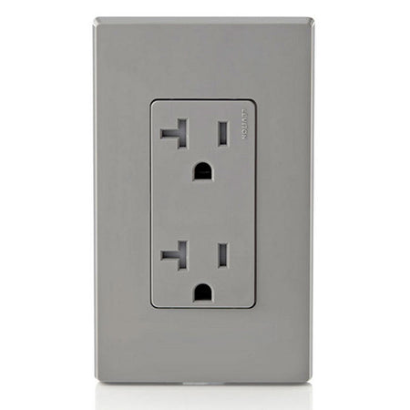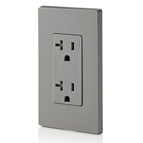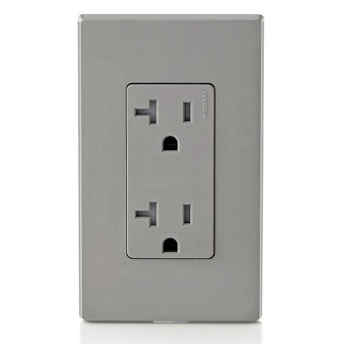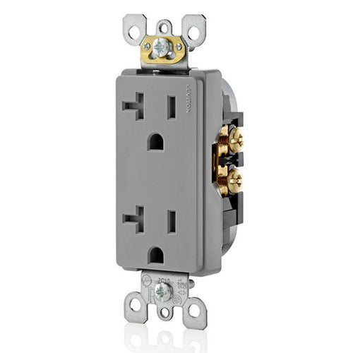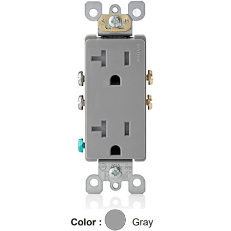 Leviton T5825-GY, Decora Straight Blade Duplex Receptacle, Residential Grade, Tamper-Resistant, 20A 125V, NEMA 5-20R, 2-Pole, 3-Wire, Self-Grounding, Side Wired Only, Gray