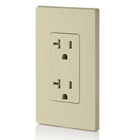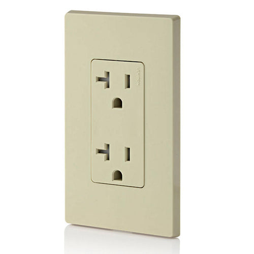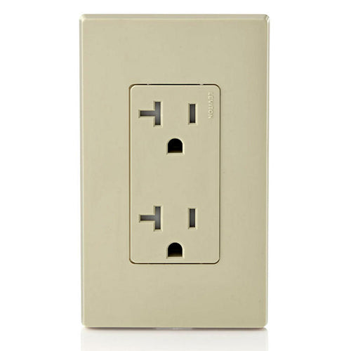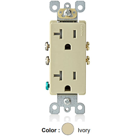 Leviton T5825-I, Decora Straight Blade Duplex Receptacle, Residential Grade, Tamper-Resistant, 20A 125V, NEMA 5-20R, 2-Pole, 3-Wire, Self-Grounding, Side Wired Only, Ivory
