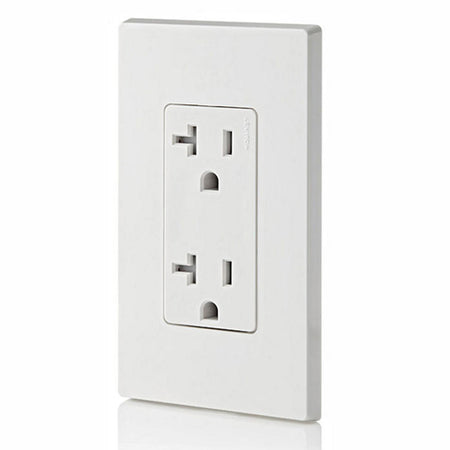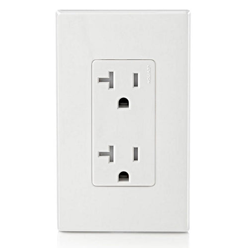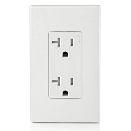 Leviton T5825-W, Decora Straight Blade Duplex Receptacle, Residential Grade, Tamper-Resistant, 20A 125V, NEMA 5-20R, 2-Pole, 3-Wire, Self-Grounding, Side Wired Only, White