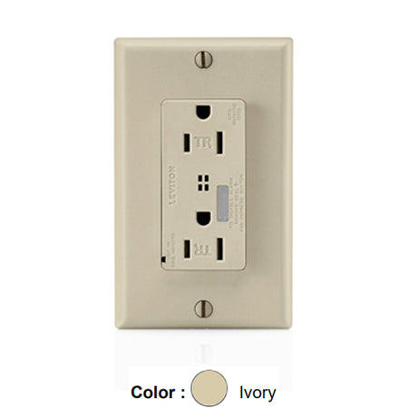 Leviton T7280-I, Decora Plus Surge Protective Duplex Receptacle, Commercial Specification Grade, Tamper-Resistant, Audible Alarm, Indicator Light, 15A 125V, NEMA 5-15R, 2-Pole, 3-Wire, Back and Side Wire, Ivory