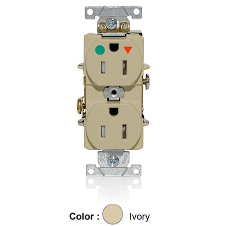 Leviton T8200-IGI, Tamper-Resistant Standard Straight Blade Duplex Receptacle, Heavy-Duty Hospital Grade, Smooth Face, Isolated Ground, 15A 125V, NEMA 5-15R, 2-Pole, 3-Wire, Back and Side Wire, Ivory