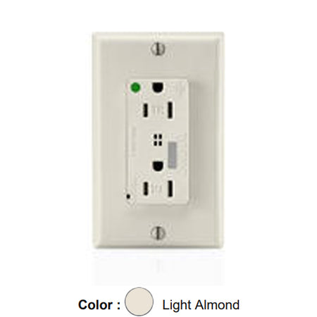 Leviton T8280-T, Decora Plus Surge Protective Duplex Receptacle, Heavy-Duty Hospital Grade, Tamper-Resistant, Audible Alarm, Indicator Light, 15A 125V, NEMA 5-15R, 2-Pole, 3-Wire, Back and Side Wire, Light Almond