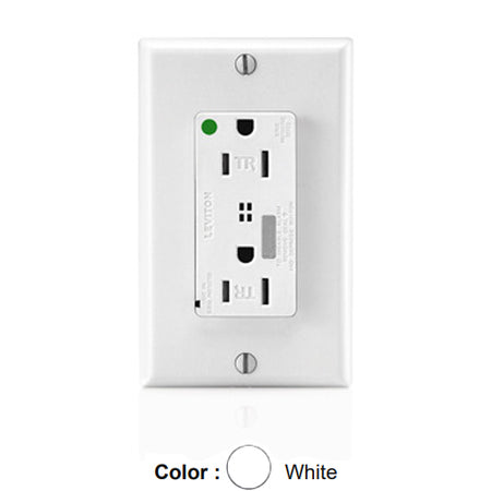 Leviton T8280-W, Decora Plus Surge Protective Duplex Receptacle, Heavy-Duty Hospital Grade, Tamper-Resistant, Audible Alarm, Indicator Light, 15A 125V, NEMA 5-15R, 2-Pole, 3-Wire, Back and Side Wire, White