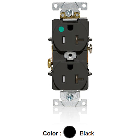 Leviton T8300-E, Tamper-Resistant Standard Straight Blade Duplex Receptacle, Heavy-Duty Hospital Grade, Smooth Face, 20A 125V, NEMA 5-20R, 2-Pole, 3-Wire, Back and Side Wire, Black
