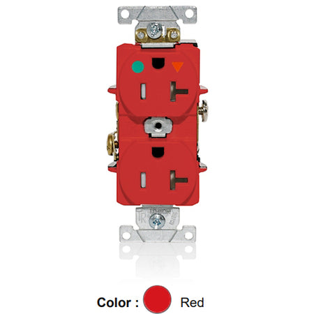 Leviton T8300-IGR, Tamper-Resistant Standard Straight Blade Duplex Receptacle, Heavy-Duty Hospital Grade, Smooth Face, Isolated Ground, 20A 125V, NEMA 5-20R, 2-Pole, 3-Wire, Back and Side Wire, Red