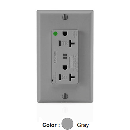 Leviton T8380-GY, Decora Plus Surge Protective Duplex Receptacle, Heavy-Duty Hospital Grade, Tamper-Resistant, Audible Alarm, Indicator Light, 20A 125V, NEMA 5-20R, 2-Pole, 3-Wire, Back and Side Wire, Gray