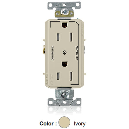 Leviton TDR15-S2I, Decora Plus Straight Blade Duplex Receptacle, Heavy-Duty Industrial Specification Grade, Two Outlets Marked ''Controlled'', Smooth Face, Tamper-Resistant, 15A 125V, NEMA 5-15R, 2-Pole, 3-Wire, Ivory