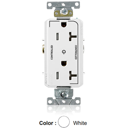 Leviton TDR20-S2W, Decora Plus Straight Blade Duplex Receptacle, Heavy-Duty Industrial Specification Grade, Two Outlets Marked ''Controlled'', Smooth Face, Tamper-Resistant, 20A 125V, NEMA 5-20R, 2-Pole, 3-Wire, White