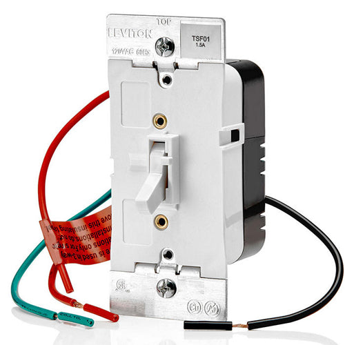 Leviton TSF01-10W, 1.5A Quiet Toggle Slide Fan Speed Control, 3-Speed, 120VAC, 60Hz, Single Pole or 3-Way, White