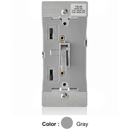 Leviton TSL06-1LG, Toggle Slide Dimmer with LED Locator for Dimmable 300W LED and CFL, 600W Incandescent, Single Pole or 3-Way, Gray