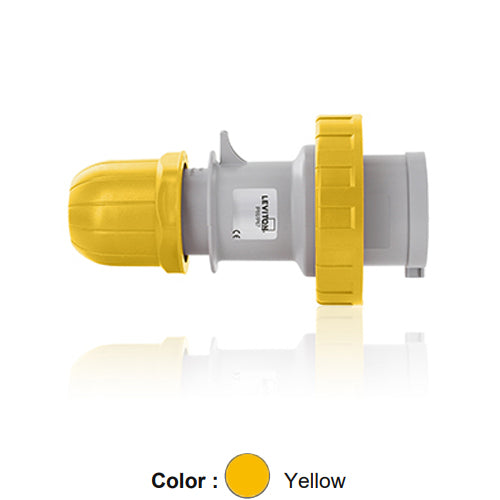 Leviton W216-P4, International Configuration Pin & Sleeve Plug, Industrial Grade, 16 Amp, 100-130 Volt, 2P+E (2P, 3W), Clock Position 4, IP66/67, Watertight, Yellow