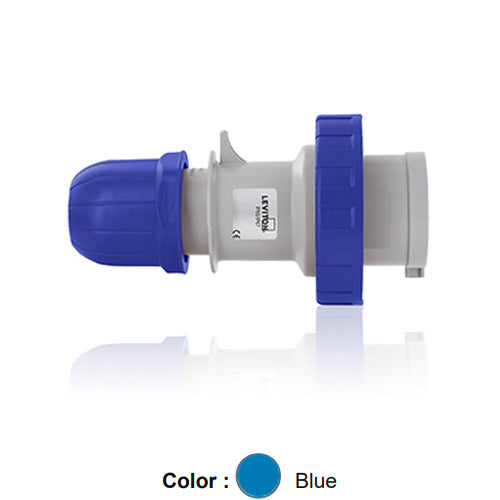 Leviton W216-P6, International Configuration Pin & Sleeve Plug, Industrial Grade, 16 Amp, 200-250 Volt, 2P+E (2P, 3W), Clock Position 6, IP66/67, Watertight, Blue