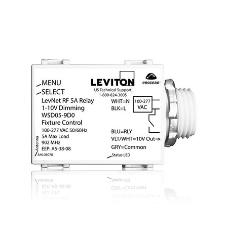 Leviton WSD05-9D0, Levnet RF Wireless 5A Relay 1-10V Dimming Fixture Controller, 1/2'' Threaded Nipple, 100-277V, 50/60Hz, White