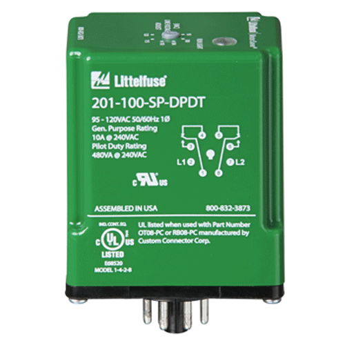 Littelfuse 201-200-SP, 201-SP Series, Single-phase voltage/phase monitor, Voltage Sensing AC 190 ~ 240VAC, SPDT (1 Form C)