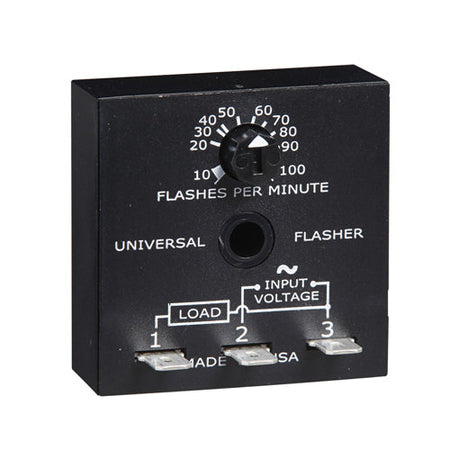 The FSU1000 incorporates an onboard adjustable flash rate of 10 to 100 FPM and a universal input voltage in one device. Its circuitry is encapsulated and is capable of controlling loads of up to 20A. The versatility of the FSU1000 makes it ideal for applications where various flash rates and operating voltages are required.