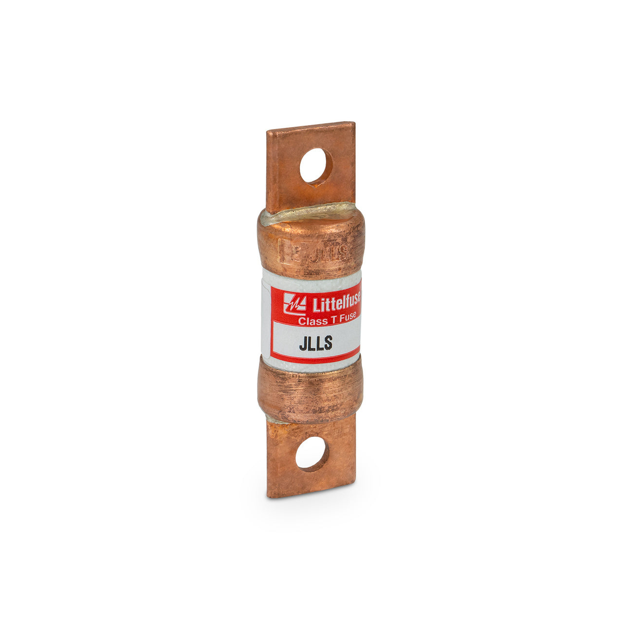 The JLLS series fast-acting fuses are the most compact fuses available in ratings above 30 amperes — less than one-third the size of comparable Class R fuses. The JLLS fuses are used for short-circuit protection of drives and surgesensitive components. When rated in accordance with the NEC, these fuses provide fast-acting overload and short-circuit protection for non-inductive circuits and equipment. Main switches containing JLLS fuses can be used to provide compact protection for meter stacks. It should be noted that molded case circuit breaker load centers and panelboards have increased interrupting ratings when “series rated” with Littelfuse Class T fuses. JLLS fuses are available in non-plated and silver plated terminations.