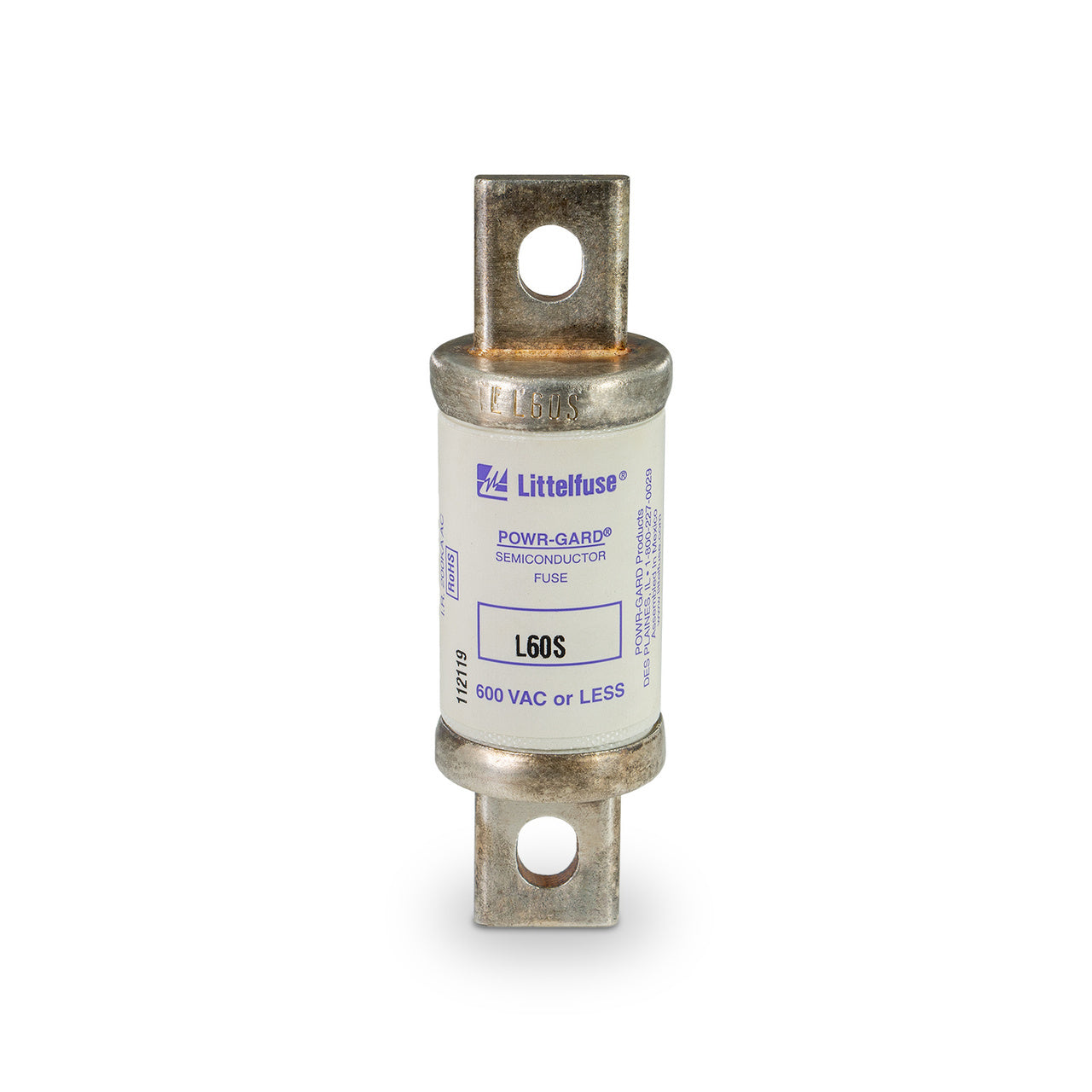 The L60S series is a traditional North American-style, high-speed fuse designed with POWR-SPEED® technology for protection of power semiconductor devices that are rated up to 600 V ac. This is a round body, extremely current-limiting fuse for use where no time delay is required. It is typically used for replacement purposes only.