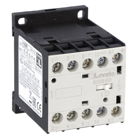 Lovato 11BG0610D024, Three-Pole BG Series Mini Contactor, IEC Operating Current Ie (AC3) = 6A, DC Coil, 24VDC, 1NO Auxiliary Contact