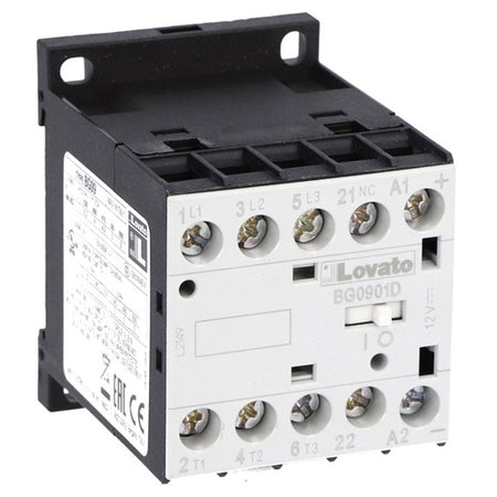 Lovato 11BG0901D024, Three-Pole BG Series Mini Contactor, IEC Operating Current Ie (AC3) = 9A, DC Coil, 24VDC, 1NC Auxiliary Contact
