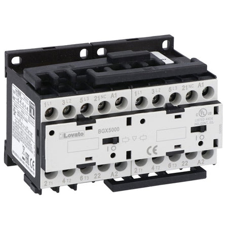 Lovato 11BGR0901A12060, Reversing Contactor Assembly, AC Coil, External Interlock with Power and Auxiliary Wiring, 9A AC3 In AC, 4kW, Coil Voltage 120VAC 60Hz