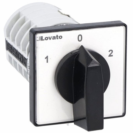 Lovato 7GN2013U, Rotary Cam Switch 7GN Series, Dahlander Motor Control Switch 1-0-2, 20A, For Front Mounting with Black Handle, Front Plate 48X48mm