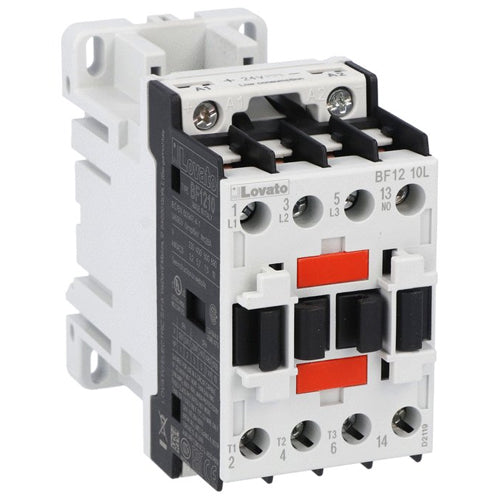Lovato BF1210L024, BF Series Three-Pole Contactor, IEC Operating Current Ie (AC3) = 12A, DC Coil Low Consumption, 24VDC, 1NO Auxiliary Contact