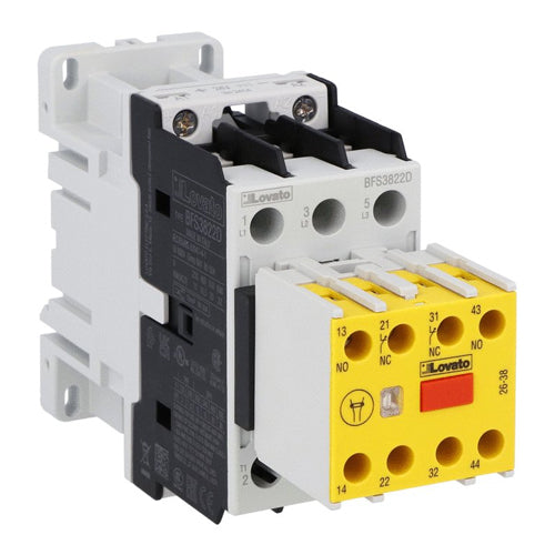 Lovato BFS3822D024, Three-pole Safety Contactor, IEC Operating Current le (AC3) = 38A, DC Coil, 24VDC, 2NO+2NC Auxiliary Contact